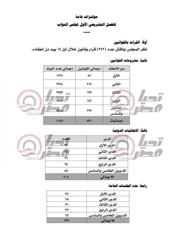 يذكر أن مجلس الشيوخ، عقد جلسته الأولى من دور الانعقاد الأول من الفصل التشريعي الأول بعد انتخابه، تنفيذا للتعديلات الدستورية التي أوجبت وجود غرفة نيابية ثانية، وتم خلال الجلسة الأولى للشيوخ انتخاب رئيس المجلس والوكيلين، وتشكيل لجنة خاصة لإعداد لائحة المجلس.